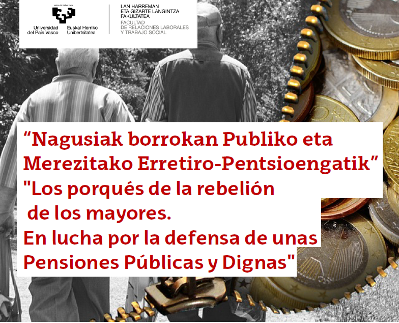 Organiza: Facultad de Relaciones Laborales y Trabajo Social de la UPV/EHU y Asociación PJB personas jubiladas de Bizkaia, por unas pensiones públicas dignas.