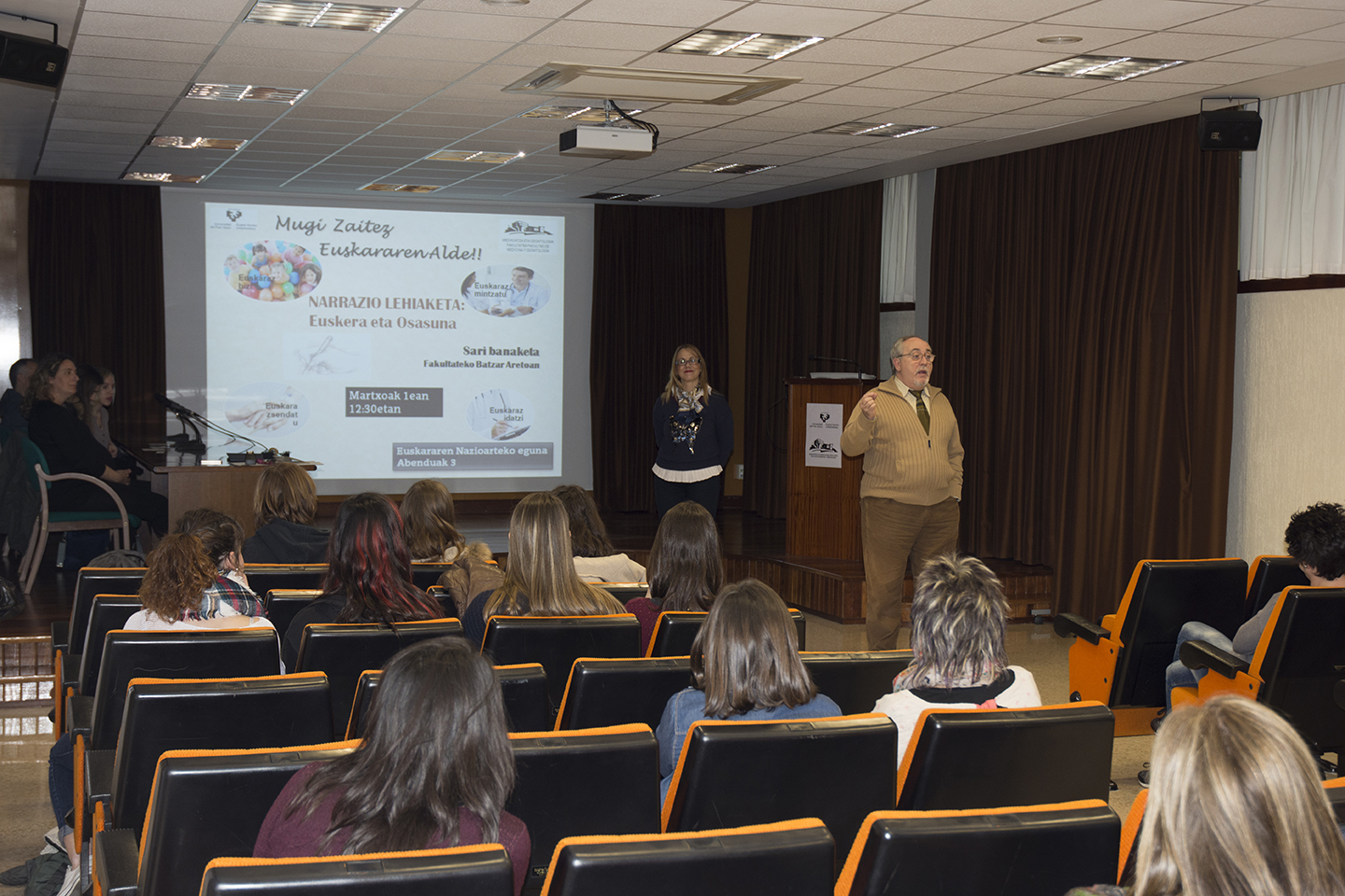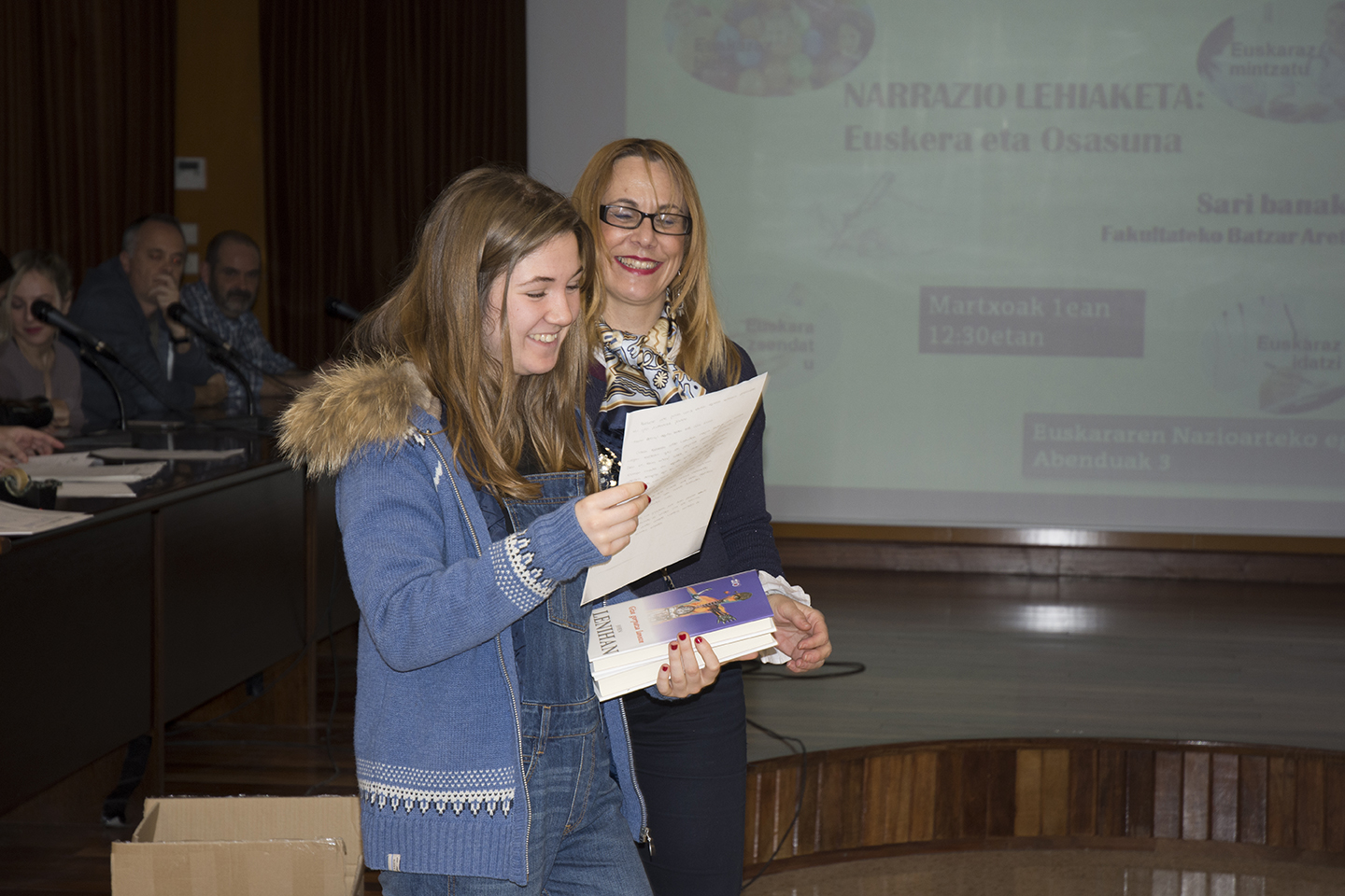 El pasado 1 de mazro de 2016 se llevó a cabo la entrega de premios del concurso de narraciones del Día del Euskera en el Salón de Grados, de la mano de la vicedecana de Euskera Agurtzane Ortiz.