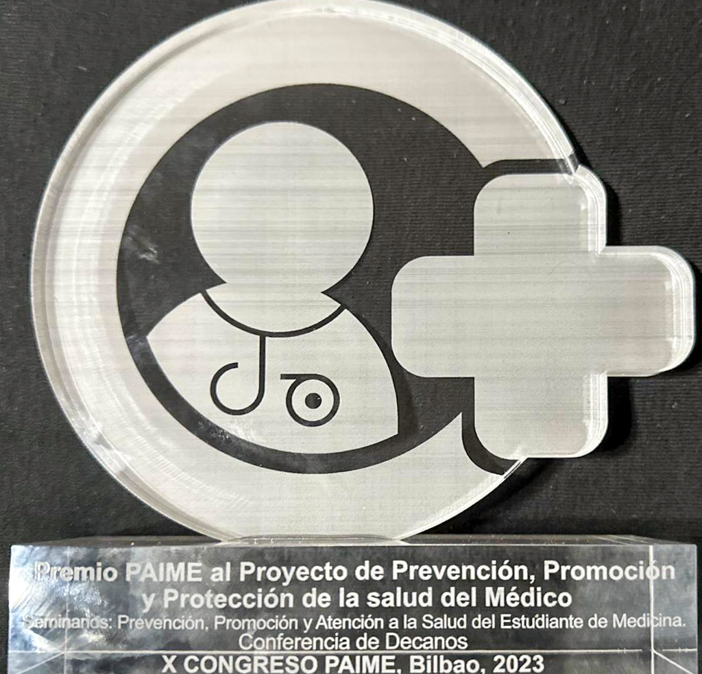“Medikuen osasuna prebenitu, babestu eta sustatzeko proiektuaren saria” kategorian, Fundación Mutual Medicok eta Medikuntzako fakultateetako Dekanoen Konferentziak jaso dute saria. Haren ordezkari gisa, Joseba Pineda dekanoak, Konferentziako Batzorde Iraunkorreko kideak, jaso zuen saria. M. Isabel Moya doktorea, FPSOMCko lehen lehendakariordea eta PAIMEko koordinatzaile nazionala