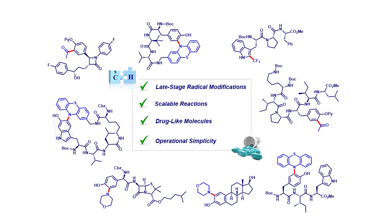 C–H functionalization is among the hottest topics within modern chemistry. Indeed, otherwise unreactive C–H bonds can be considered today as regular functional groups for further chemical manipulation and such a concept has undoubtedly revolutionized the perception of organic chemistry when designing chemical syntheses. The aim of our research group relies on the development of innovative and sustainable procedures for the assembly of medicinally relevant compounds upon metal-catalyzed C–H functionalization reactions.
