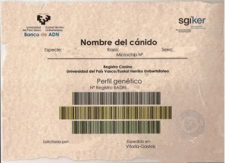 Genetic fingerprint: from the animal that you wish to include in the DNA Canine Register of Feline Register at the University of the Basque Country UPV/EHU.
