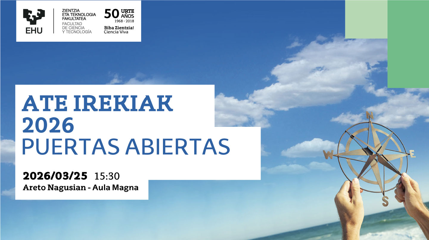Martxoaren 25ean, asteazkena, 15:30etan Ate Irekiak Jardunaldiak ospatuko ditugu Zientzia eta Teknologia Fakultatean.