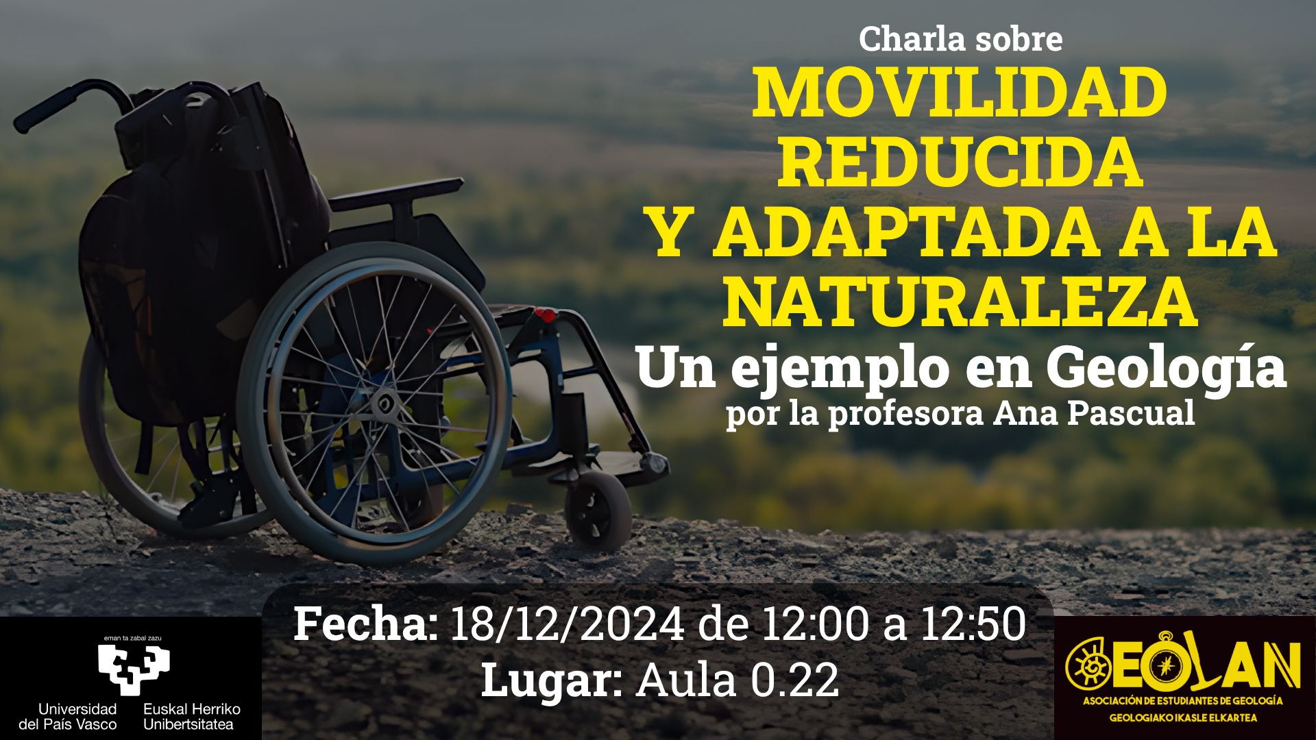 Geologia saileko irakasle Ana Pascualek hitzaldi bat emango du, eta bertan, mugikortasun murriztua Geologia gradu bereko landa-irteeretara egokitzeari buruz izandako esperientziak kontatuko ditu. Horrela, ikasleak kontzientziatu nahi dira inklusioa sustatzearen garrantziaz, eta ikusarazi nahi da baldintza desberdinak dituen edozein pertsona gai dela gradua egiteko, betiere haien premiak kontuan hartzen badira egokitzeko.