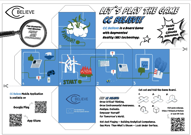 Desde la Catedra UNESCO sobre Desarrollo Sostenible y Educación Ambiental de la UPV/EHU junto con un consorcio de empresas, instituciones y Universidades Polacas, han desarrollado el proyecto ERASMUS+ “BELIEVE IN CLIMATE CHANGE- DEVELOPMENT OF THE ANALYTICAL COMPETENCES AND CRITICAL THINKING OF YOUTH” financiado por la Unión Europea. Como resultado de este proyecto, han creado el juego colaborativo “CC BELIEVE” para ayudar a desarrollar el pensamiento crítico de las y los jóvenes en torno a la información que reciben sobre el Cambio Climático. El objetivo de este juego interactivo a través de retos es ayudar a tomar decisiones informadas sobre la fiabilidad de las noticias sobre el cambio climático.