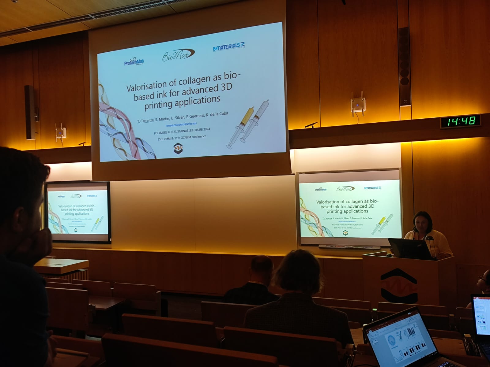 Teresa Carranza y Maialen Uribarrena han presentado sus trabajos sobre impresión 3D de colágeno en el 85th PMM & 11th GCNPM: Polymers for sustainable future, celebrado en Praga. Koro de la Caba y Pedro Guerrero han presentado el desarrollo de scaffolds para regeneración de cartílago realizado en colaboración con ISS Biogipuzkoa en el 48th Congress of the Federation of European Biochemical Societies (FEBS) celebrado en Milan. Mireia Andonegui ha presentado sus resultados sobre materiales conductores en el 44th Annual Meeting of the RSEQ Specialized in Electrochemistry celebrado en Bilbao.