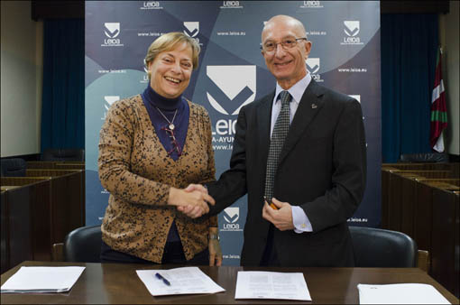 El convenio de colaboración ha sido firmado en el Ayuntamiento de Leioa por la alcaldesa Mari Carmen Urbieta, y por el vicerrector del campus de Bizkaia de la UPV/EHU, Carmelo Garitaonandia.