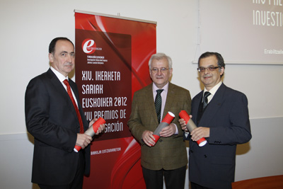 La XIV edición de los Premios Euskoiker, que reconocen la labor de investigación de los profesores de la Universidad del País Vasco/Euskal Herriko Unibertsitatea (UPV/EHU), ha distinguido: a Francisco Javier Fernández Macho, catedrático de Econometría, que estudió el impacto económico en Euskadi de la Nueva Red Ferroviaria Vasca; a José Francisco Cambra Ibáñez, catedrático de Ingeniería Química, que analizó los procesos sostenibles en la industria metalúrgica; y a Juan Ramón González Velasco, catedrático de Ingeniería Química, que abordó la determinación de contaminantes atmosféricos en ambientes urbanos del País Vasco.
