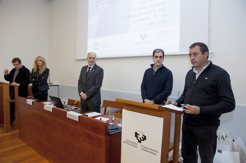 En la ceremonia se ha homenajeado a 25 personas de diferentes centros universitarios de los tres Campus de la UPV/EHU, que han concluido sus estudios y que han colaborado en el funcionamiento de la universidad. En palabras del rector, Iñaki Goirizelaia: "La participación del alumnado en los diferentes órganos de representación universitaria constituye una verdadera necesidad para el buen funcionamiento de la institución. Pero esa teoría necesita, como siempre, materializarse en la realidad, desarrollar una práctica concreta. Eso exige que alumnos y alumnas asuman el compromiso de representar a sus compañeros, dirigir sus reivindicaciones y tomar parte en los órganos universitarios. En ese sentido, este acto es un reconocimiento público a ese esfuerzo que habéis asumido, de forma personal, y que ha sido decisivo para un mejor desarrollo de la Universidad del País Vasco".