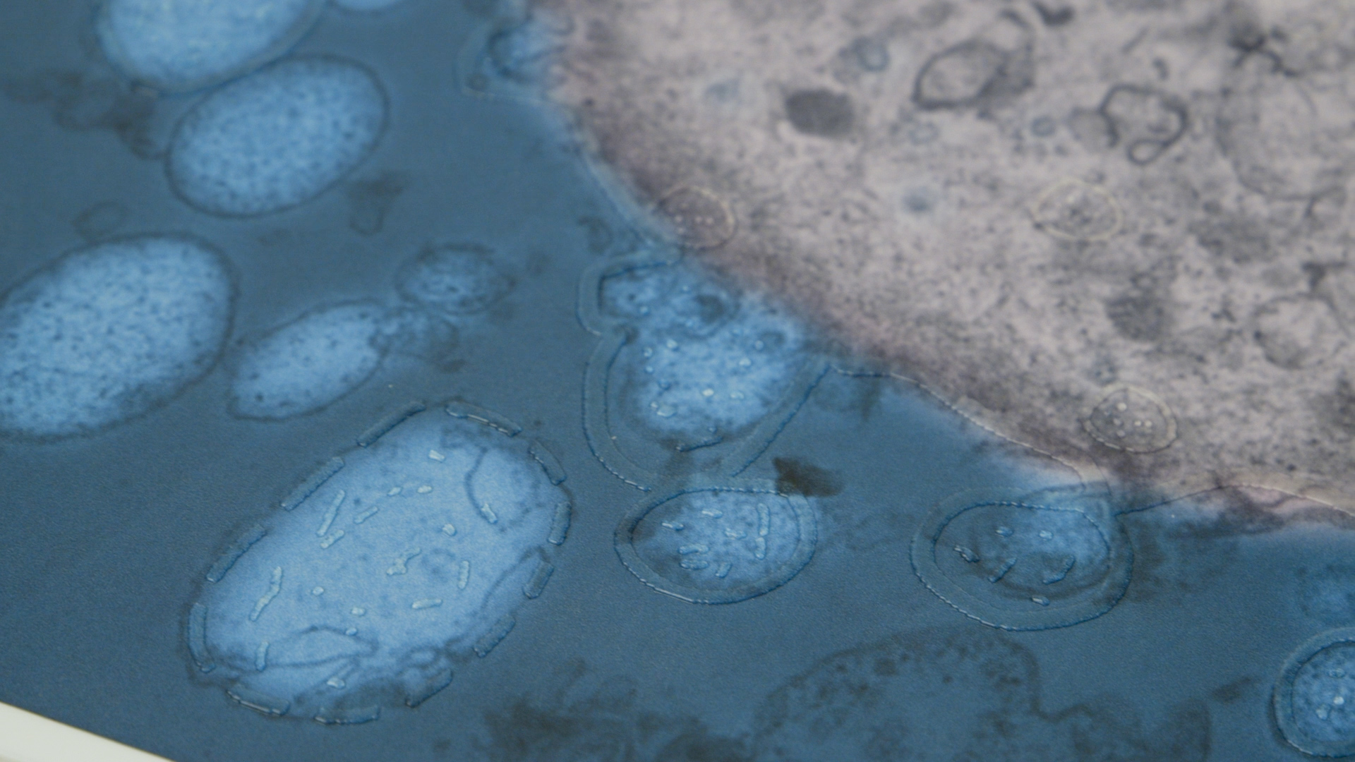 Son fotografías obtenidas con distintos microscopios de gran aumento, que permiten ver con detalle las partes minúsculas del ojo de la ballena y que reflejan que, a pesar de que a tamaño real seamos muy diferentes, en lo diminuto somos muy similares. “Quería hacer ese ejercicio de comparar el tamaño real con el microscópico”, explica Vecino.