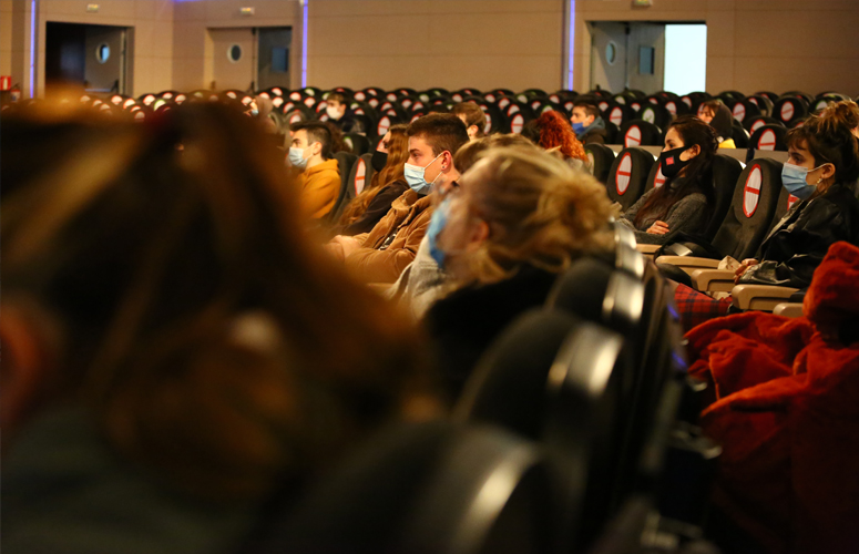 Hoy hemos podido ver el documental “Varados” de Helena Taberna, y debatir con ella el drama de la migración en una posterior mesa redonda. El Aula Magna ha acogido a tantas personas como permite el nuevo aforo y, al menos, 4 aulas de la Facultad de Educación de Bilbao se han conectado mediante Black Board Collaborate.