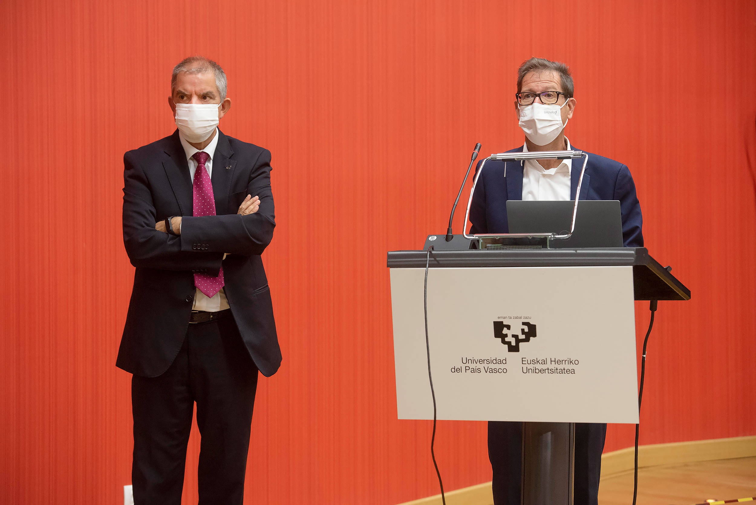 Eva Ferreira, rectora de la UPV/EHU, e Iñaki San Sebastián, ex director General de Tecnalia. FOTO: Fernando Gómez. UPV/EHU