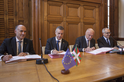 Por la Universidad del País Vasco, ha tomado parte en el acto el rector y presidente de Euskampus Fundazioa, Iñaki Goirizelaia, y por la Universidad de Burdeos el rector de la entidad y presidente asimismo de IdEX Bordeaux, Initiative d'Excellence, Manuel Tuñón de Lara. La firma de este acuerdo ha contado con la presencia del lehendakari del Gobierno vasco, Íñigo Urkullu, y del presidente del Consejo Regional de Aquitania, Alain Rousset.