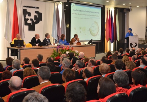 En el Aula Magna de la Facultad de Letras de la Universidad del País Vasco/Euskal Herriko Unibertsitatea se ha celebrado el acto solemne de apertura del curso académico 2015/2016. El programa ha comenzado con la lectura de un resumen de la memoria del curso académico 2014/2015 por parte del secretario general de la UPV/EHU, José Luis Martín. Posteriormente, la catedrática de Bioquímica y Biología Molecular Mertxe de Renobales Scheifler ha leído la lección inaugural que llevaba por título ‘Transgénicos, ¿por qué no?'.