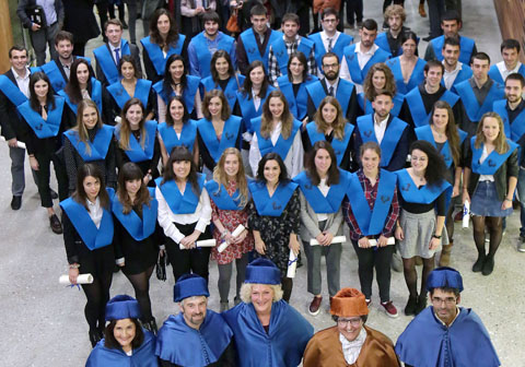El Centro Carlos Santamaría de la UPV/EHU, en Donostia / San Sebastián, acogió el acto de entrega de diplomas a las 66 personas graduadas de la promoción del curso 2016/17 de la Facultad de Química. El acto estuvo presidido por la vicerrectora de Estudiantes y Empleabilidad de la UPV/EHU, Txelo Ruiz, y la decana de la Facultad de Química, Marian Iriarte. Durante el acto, Guillermo Roa Zubia, ex alumno y miembro de Elhuyar Fundazioa, impartió una ponencia y se entregaron también los Premios Extraordinarios Fin de Carrera. Fue un evento multitudinario al que acudió el alumnado que finaliza sus estudios, acompañados de sus familiares y amigos.