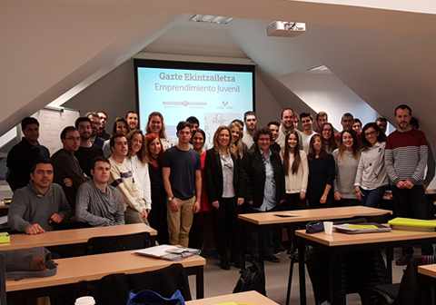 Hoy viernes, 1 de diciembre, en el edificio Basoko Etxea, en el parque Sarriko, en Bilbao, la vicerrectora de Estudiantes y Empleabilidad de la UPV/EHU, Txelo Ruiz, ha clausurado el curso complementario ‘Modelos de negocio y emprendimiento innovador’, que se ha desarrollado en el citado lugar entre el 23 de noviembre y el 1 de diciembre. Este curso es una formación especializada para que el alumnado y las personas tituladas de la UPV/EHU despeguen con sus proyectos de empresa o start-up, con el fin de ayudarles a desarrollar sus ideas de negocio, que parten de un especial sesgo hacia las nuevas tecnologías. Esta actividad está vinculada al programa ‘Becas de Emprendimiento Juvenil’ puesto en marcha mediante el acuerdo suscrito entre el Gobierno Vasco y la Universidad del País Vasco/Euskal Herriko Unibertsitatea. En total han participado en el curso cuarenta y cinco personas (becarias/estudiantes).