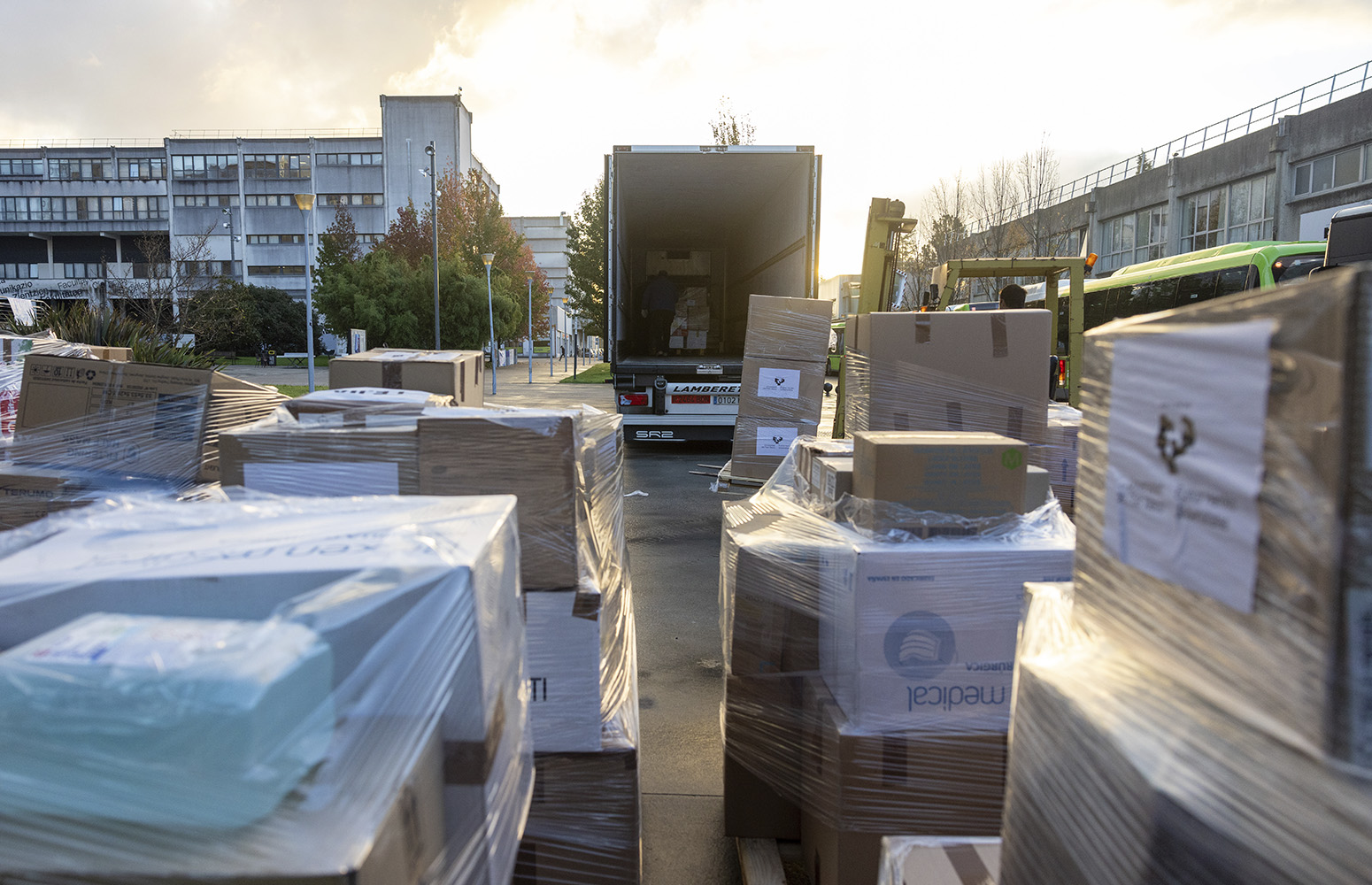 El envío se ha podido realizar gracias a la solidaridad de toda la comunidad universitaria de la UPV/EHU. Muchas gracias a las personas que habéis traído el material y a las que habéis trabajado en la recogida, carga y descarga en los Campus de Araba, Bizkaia y Gipuzkoa.
