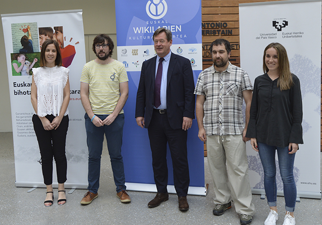 Junto al consejero Zupiria, han participado en la presentación el vicerrector de Euskera y Formación Continua de la UPV/EHU, Jon Zarate; la directora de Promoción del Euskera del Gobierno Vasco, Estibaliz Alkorta; y los miembros de Euskal Wikilarien Kultura Elkartea Galder Gonzalez y Edurne Agirre. “La wikipedia es la enciclopedia más leída en el mundo y tiene una presencia muy relevante entre la población vascohablante. Cada día se abren 70.000 artículos en euskera en las tablets, teléfonos móviles y ordenadores de la ciudadanía vasca. Por eso, es fundamental que esta herramienta cuente con contenidos amplios, de calidad y rigurosos”, ha indicado Zupiria.