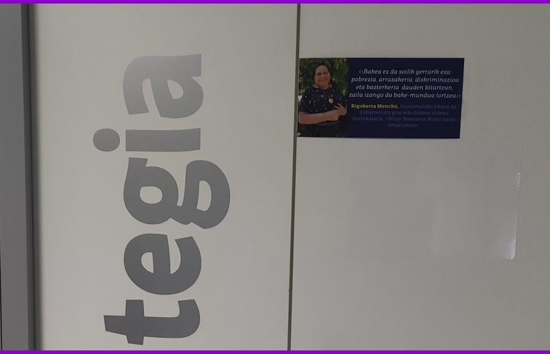 Mensaje de Rigoberta Menchú en una puerta de la Facultad de Informática. Foto: UPV/EHU -