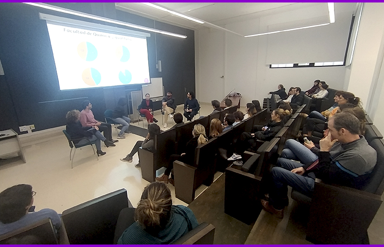 Mesa redonda bajo el título 'Facultad de Química: ¿igualitaria?', celebrada en el salón de actos del centro. Foto: UPV/EHU. -