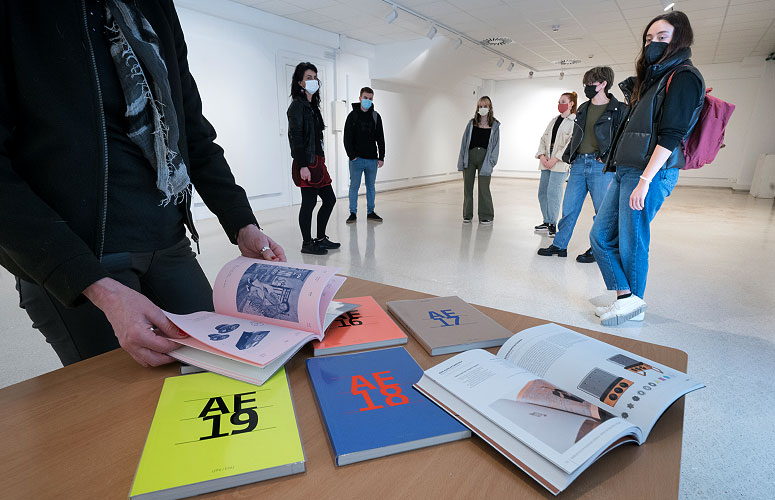 Entre las actividades que ya son tradición está la exposición de Trabajos de Fin de Grado en Bizkaia Aretoa. Este curso alcanzó su séptima edición y del 17 de diciembre al 7 de enero se pudo ver una selección de las obras de 161 alumnos y alumnas de los tres grados (Arte, Creación y Diseño y Conservación y Restauración de Bienes Culturales) que se imparten en este centro: pinturas, instalaciones, esculturas, obras gráficas, trabajos videográficos y fotografías, entre otros. La exposición sigue viva en el recién publicado catálogo AE20 (Arte Ederrak 2020), que por primera vez se ha editado a color.