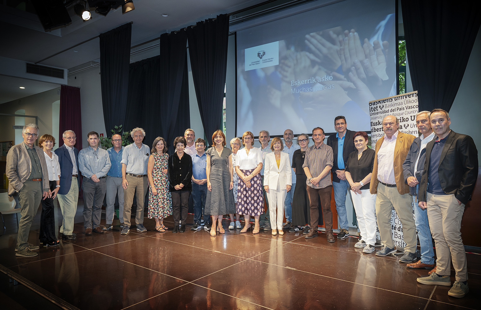 Con la presencia de la rectora Eva Ferreira, el Campus de Álava organizó un acto para hacer visible la gratitud y el reconocimiento de la Universidad del País Vasco hacia todas las personas del Campus que se han jubilado este último año y a aquellas que cumplen veinticinco años, un cuarto de siglo, de trabajo en la institución.
