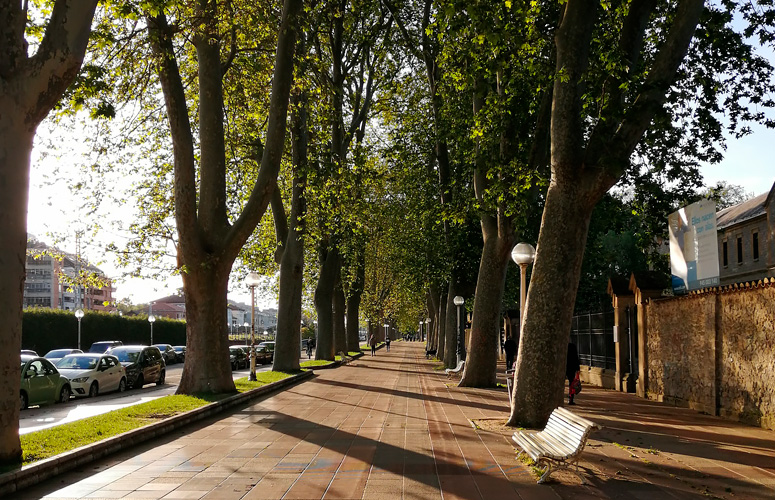 Primeros rayos del día disfrutándolos caminando, haciendo ejercicio, protegiendo el medio ambiente, oyendo algún lloro de peques que entran en sus coles acompañados de sus aitas y amas, viendo a grupos de estudiantes repasando antes de algún examen, oliendo a hierba recién cortada y regada, observando a la gente y siguiendo disfrutando caminando.
