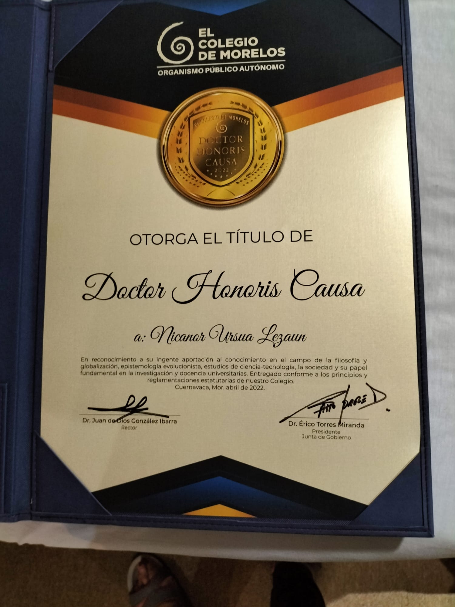 Nicanor Ursua investido Doctor Honoris Causa por El Colegio de Morelos de México
