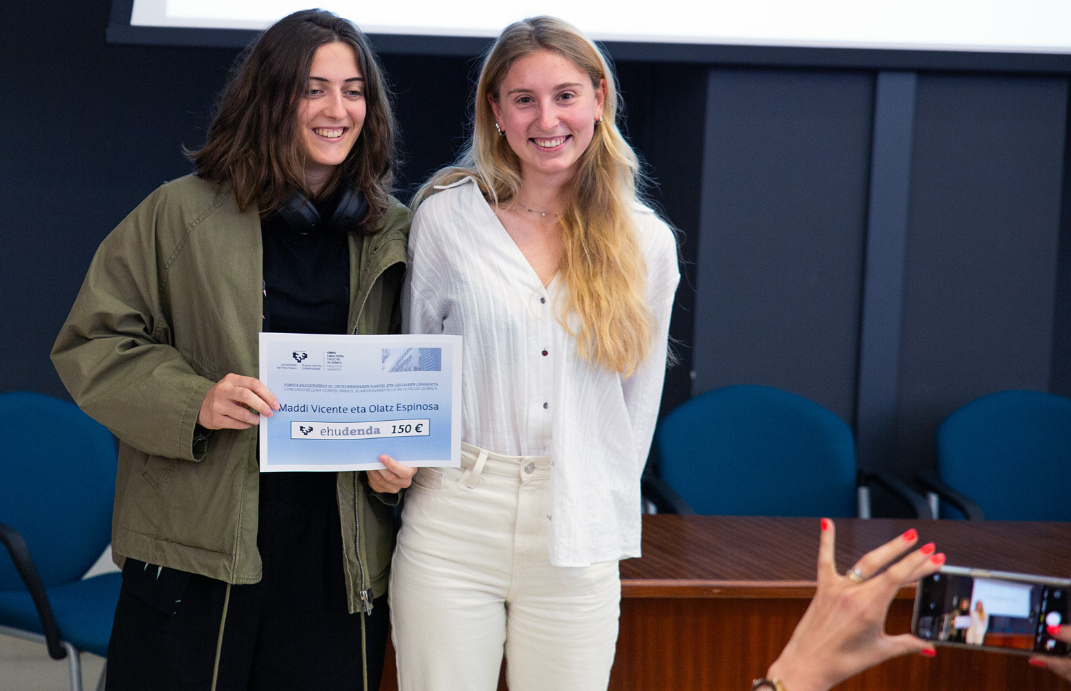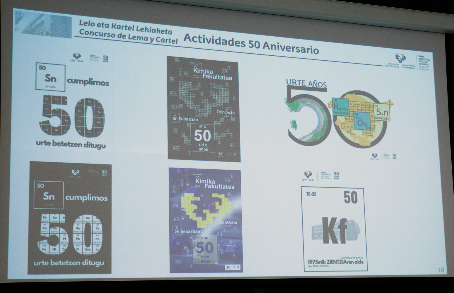 También se hizo entrega de los premios del concurso para elaborar el lema y el cartel del 50 aniversario del centro. El premio al mejor cartel fue para Sardon´s Lab y el premio al mejor lema para las estudiantes Maddi Vicente y Olatz Espinosa.