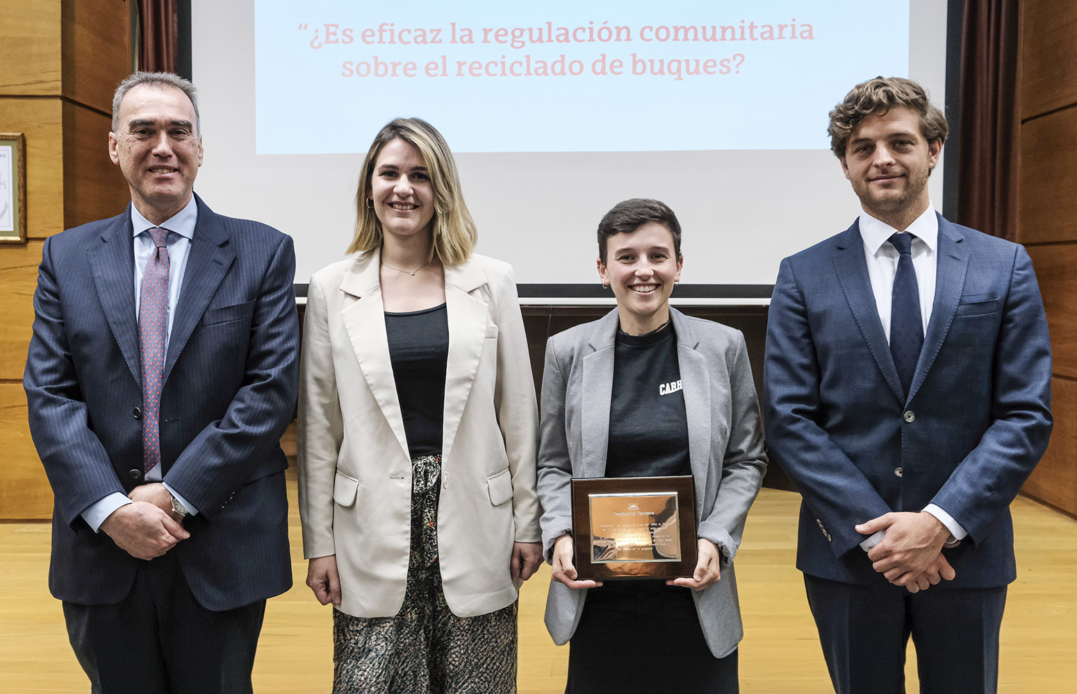 Por su parte, el Premio Tradewind Tankers, otorgado por la naviera del mismo nombre al mejor TFG/TFM relacionado con el ámbito Náutico-Marino, ha recaído en Andrea Astudillo Rivadas, Grado en Náutica y Transporte Marítimo por la Escuela de Ingeniería de Bilbao. El galardón está dotado con 1.500 euros, y se le ha otorgado por el TFG “¿Es eficaz la regulación comunitaria sobre el reciclado de buques?”, dirigido por la profesora del Departamento de Derecho de la Empresa y Derecho Civil, Ainhoa Fernández García de la Yedra. El galardón ha sido entregado por Carlos Juan Panek, de Tradewind Tankers.