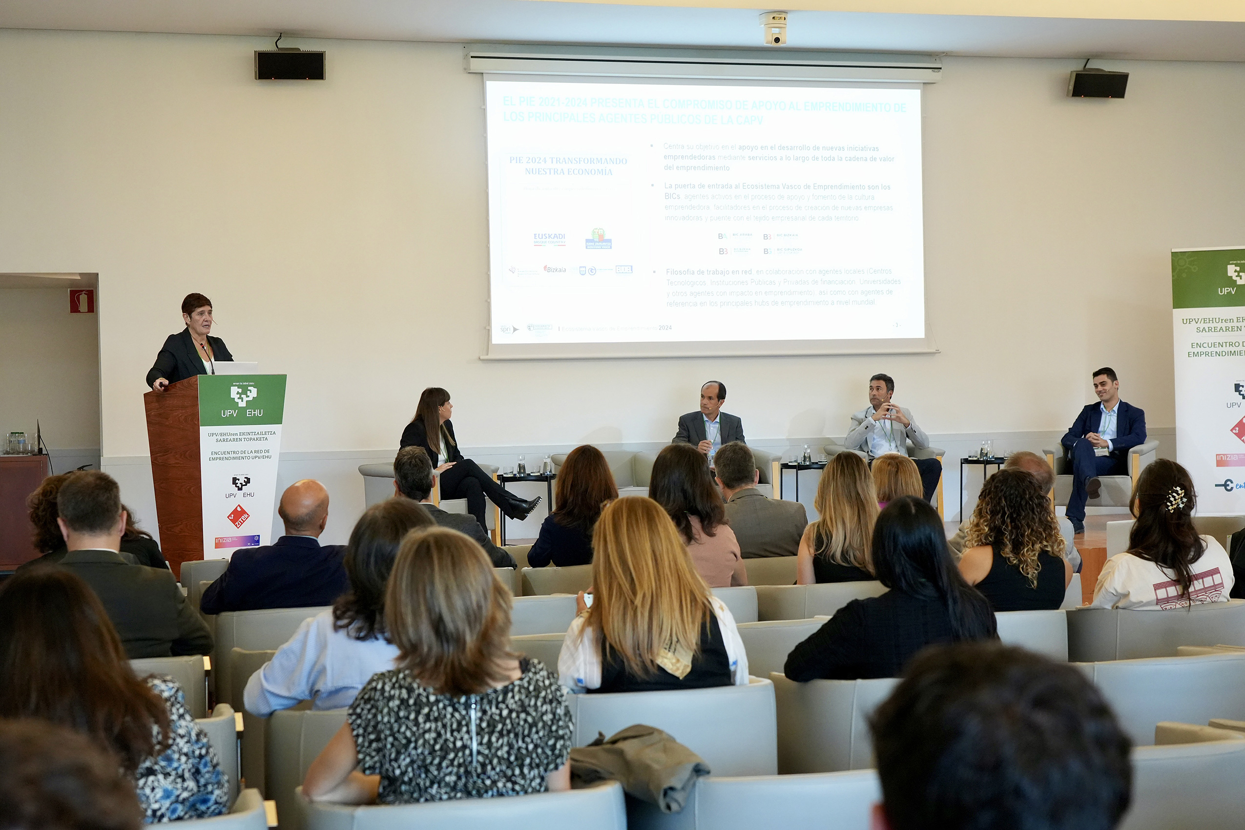 La Universidad del País Vasco ha impulsado, desde 2021, la creación de 38 empresas de base tecnológica. Este ha sido uno de los datos más importantes que se han dado a conocer hoy, en el Encuentro de la Red de Emprendimiento de la UPV/EHU, que ha tenido lugar en Bizkaia Aretoa. La jornada ha sido inaugurada por la rectora, Eva Ferreira, y ha contado con la presencia de responsables en la materia del Gobierno Vasco y de las diputaciones forales, así como de representantes de muchos de los proyectos empresariales creados en estos últimos años y de responsables de los tres grandes programas de emprendimiento con que cuenta la universidad pública vasca: Inizia en Álava, Zitek en Bizkaia y Entreprenari en Gipuzkoa.