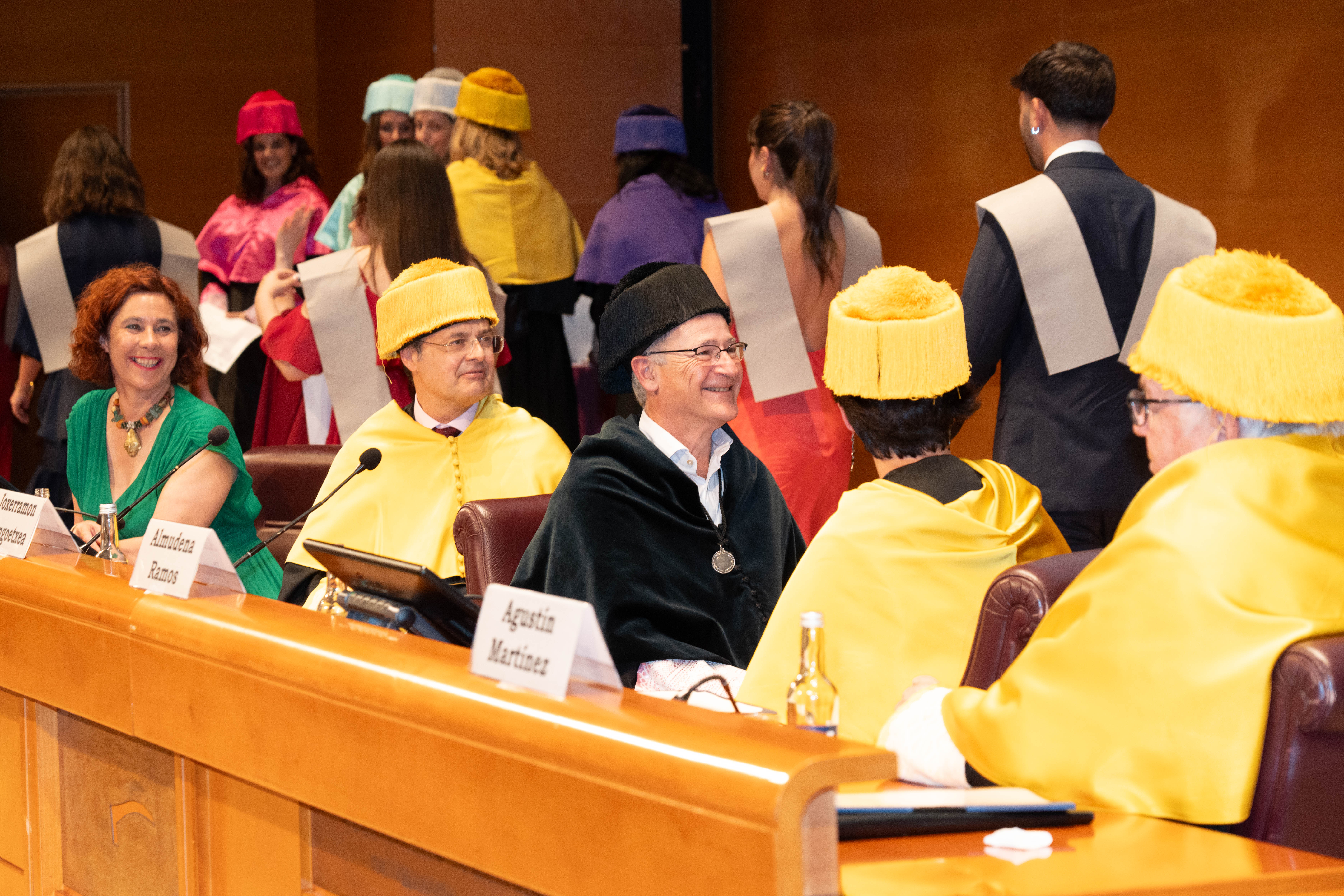 El acto fue presidido por el rector de la EHU, Joxerramon Bengoetxea; el consejero de Salud del Gobierno Vasco, Alberto Martínez Ruiz; la primera teniente de alcalde del Ayuntamiento de Bilbao, Amaia Arregi Romarate; la decana de la Facultad, Almudena Ramos Uriarte; y la secretaria académica, Laura Gómez Santos. Agustín Martínez Ibargüen, catedrático del Departamento de Dermatología, Oftalmología y Otorrinolaringología y exdecano de la facultad, ejerció como padrino de la promoción y destacó en su intervención la importancia ética y social de las profesiones sanitarias.