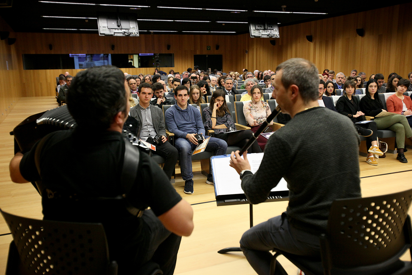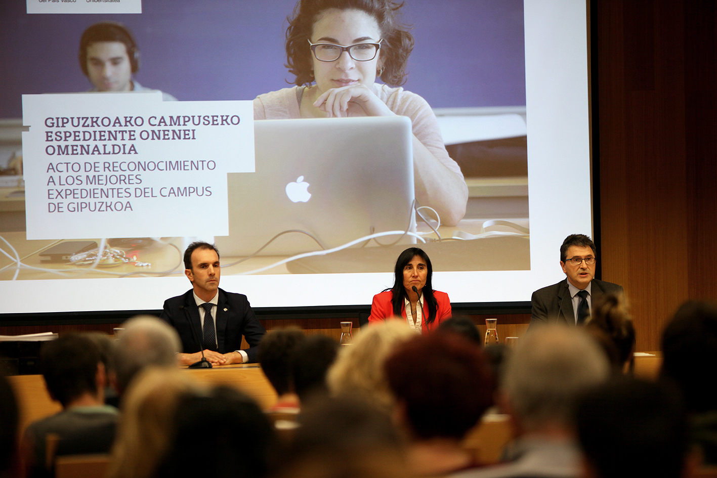 El Centro Carlos Santamaría acogió el acto de reconocimiento a los mejores expedientes del curso académico 2017/2018 del Campus de Gipuzkoa de la Universidad del País Vasco. El evento estuvo presidido por la rectora de la UPV/EHU, Nekane Balluerka, y el vicerrector del campus, Agustín Erkizia. Durante el mismo, Ander Aizpurua, director general de la Fundación Kutxa, impartió una ponencia sobre la excelencia. Así mismo, Helene Colomo, mejor expediente académico del Grado de Derecho del pasado curso, habló en nombre del alumnado premiado, que estuvo acompañado por familiares, amigos y los decanos y directores del campus. El acto finalizó con una actuación musical a cargo del txistulari Garikoitz Mendizabal y del acordeonista Aitor Furundarena. La jornada finalizó con un lunch ofrecido en la sala Andrestegi