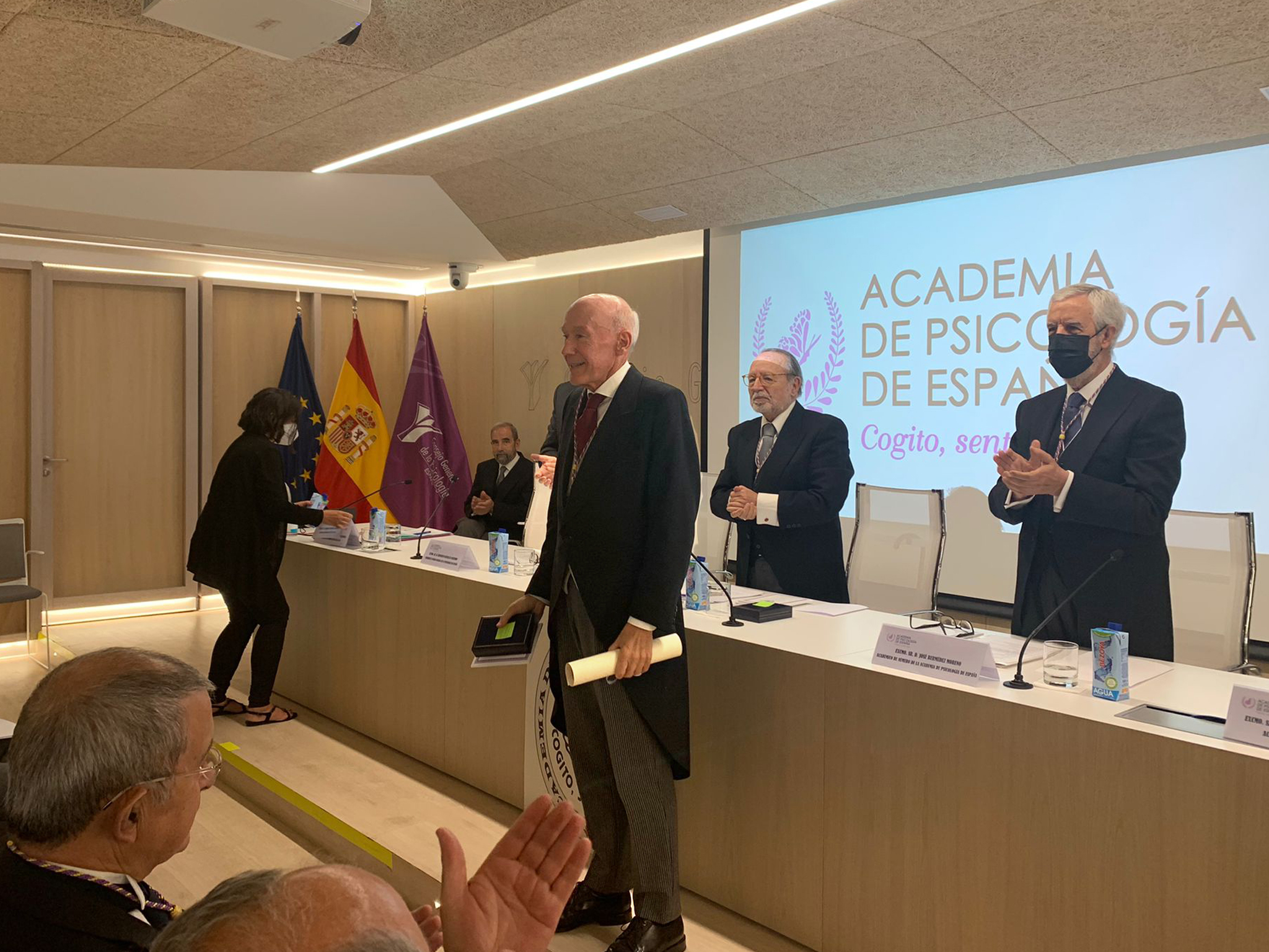 “Me satisface acceder a la Academia de Psicología de España cuando, más allá del reconocimiento de mis méritos, sigo aún como profesor emérito en plena actividad intelectual. Quiero agradecer a la Facultad de Psicología de la Universidad del País Vasco y a mi equipo de colaboradores, hoy profesores en diversas universidades españolas, quienes con entusiasmo, lealtad y buen hacer han creado durante años un ambiente grato de trabajo a mi alrededor. El éxito no pertenece nunca a una única persona. Mi trabajo intelectual está vinculado a un compromiso ético. No lo concibo de otra manera. Tenemos que aspirar al reconocimiento social de nuestra función, pero debemos también ser muy exigentes con nosotros mismos. Si nuestra actividad está financiada con los impuestos de los contribuyentes, es nuestra obligación devolver a la sociedad parte de lo que recibimos de ella”, destacó Enrique Echeburúa en su intervención.