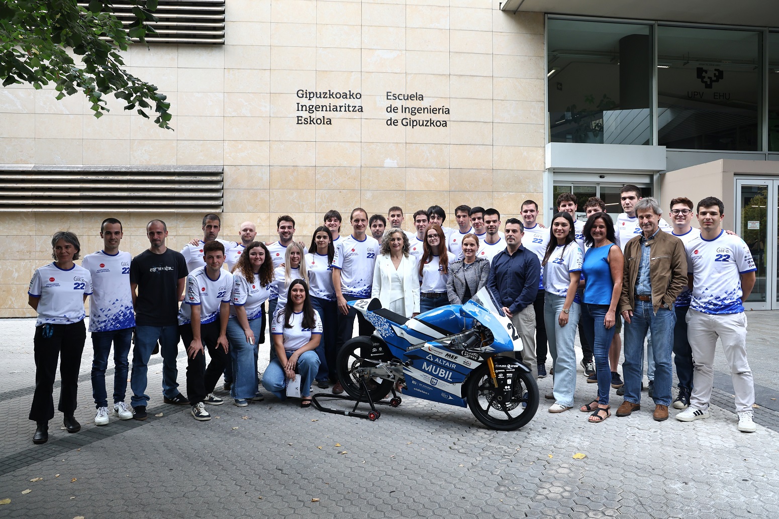 El equipo eGIPUZKOA GIE-UPV/EHU de la Escuela de Ingeniería de Gipuzkoa de la Universidad del País Vasco (EHU), formado por alumnado y profesorado del centro, ha presentado su nueva motocicleta eléctrica con el que competirá en la prestigiosa competición internacional MotoStudent Electric 2025, que se celebrará del 15 al 19 de octubre en Alcáñiz (Teruel).