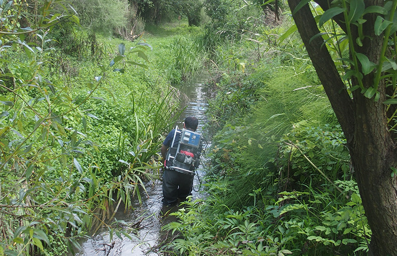 En colaboración con la Diputación Foral de Bizkaia, este verano seguimos estudiando la evolución de la población del pez espinoso (Gasterosteus aculeatus), que, como su nombre popular indica, se caracteriza por tener varias espinas en el dorso. Es un pez de pequeño tamaño, no más de 6 cm, que a duras penas ha sido capaz de sobrevivir a la contaminación, dragados, desviaciones y demás penalidades.