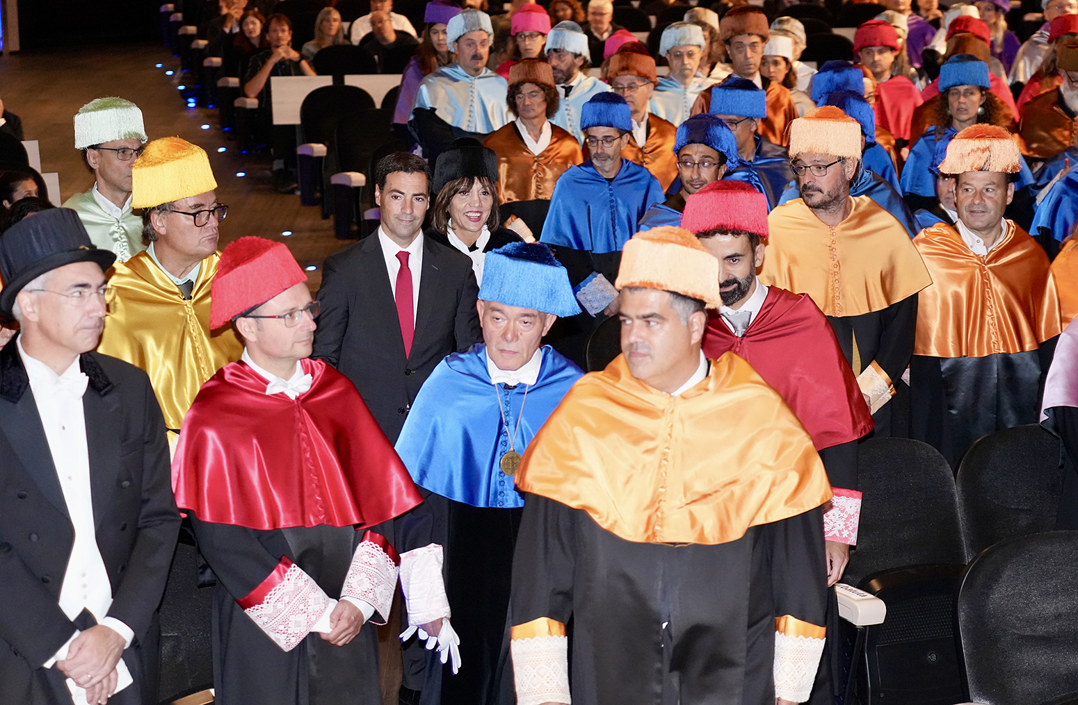 Por su parte, el secretario general de la UPV/EHU, Aitor Zurimendi, ha leído la memoria que compila la actividad de la universidad durante el curso anterior. En su amplia exposición, ha destacado que pasaron por las aulas de la UPV/EHU más de 46.600 estudiantes. También ha señalado que han podido cursar, por primera vez, el grado Biomedical Engineering y el doble grado en Educación Infantil y Educación Primaria. En posgrado, se ha reforzado la oferta docente en euskera. El secretario general también ha recordado la puesta en marcha de la red de escucha y respuesta al estudiantado, así como la aprobación, con un alto grado de consenso, del IV Plan de Inclusión, el IV Plan de Euskera, el IV Plan de Igualdad y el primer Código de Ética de la universidad. Ha habido un incremento del 18 % en los fondos para investigación provenientes de Europa. Finalmente, ha destacado que se ha creado el doble de plazas de profesorado ayudante doctor (258) para paliar los efectos derivados de la imposibilidad legal de contratar profesorado sustituto a tiempo completo, impuesta por la LOSU.