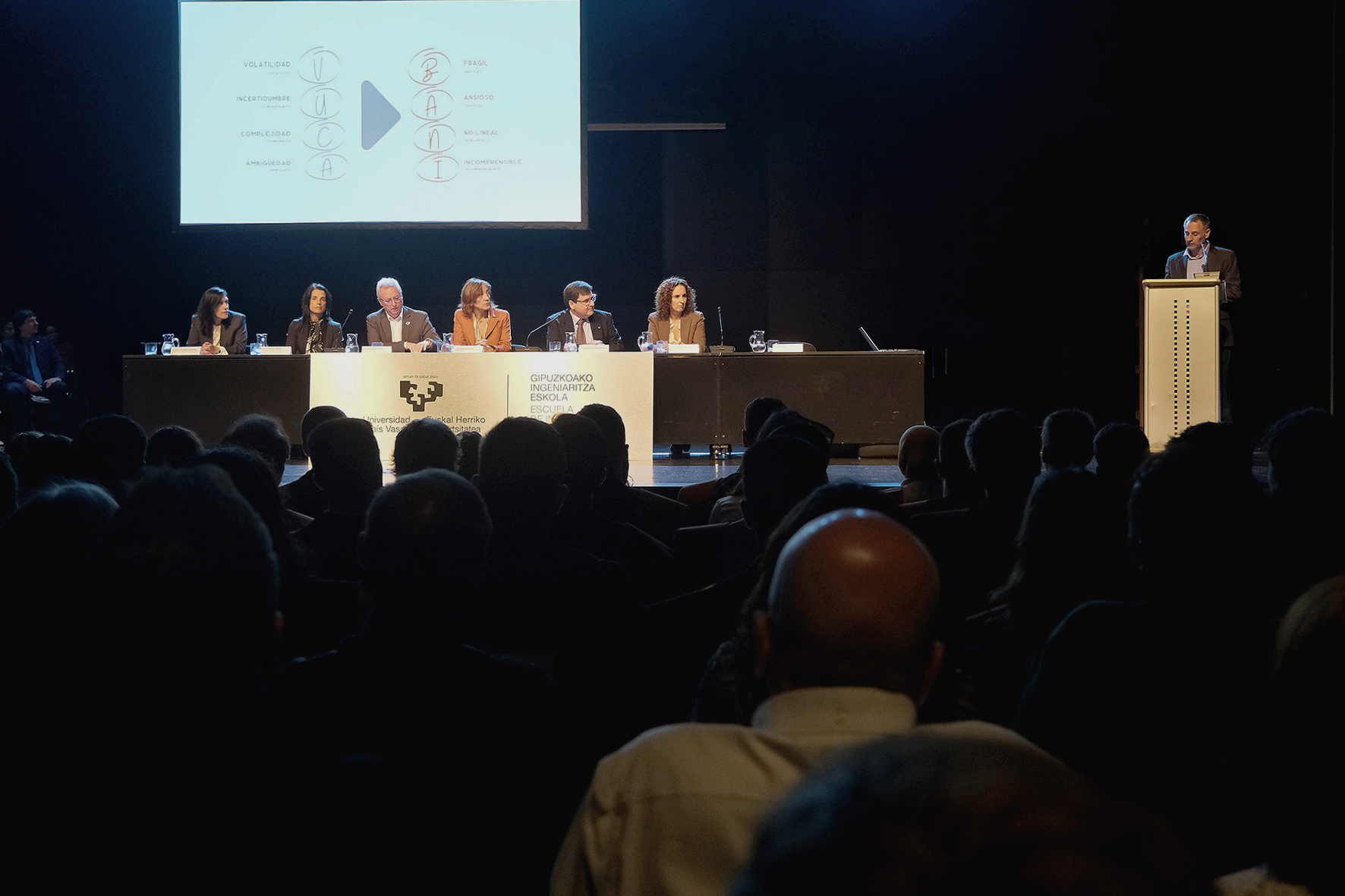 El acto estuvo presidido por la rectora de la Universidad del País Vasco, Eva Ferreira, el director del citado centro universitario, J. Xabier Ostolaza, el diputado de Medio Ambiente y Obras Públicas de la Diputación Foral de Gipuzkoa, José Ignacio Asensio, y la directora de Política y Coordinación Universitaria del Gobierno Vasco, Miren Artaraz.