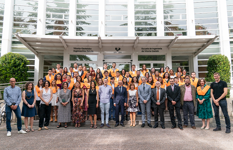 La Facultad de Economía y Empresa en el Campus de Álava celebró la graduación de los cursos académicos 2019/2020 y 2020/2021 en un acto en el que estuvieron presentes Manoli Igartua, vicerrectora del Campus de Álava de la UPV/EHU, Ramiro González, diputado general de Álava, Jon Barrutia, decano de la Facultad, Miren Artaraz, directora de Política y Coordinación Universitaria del Gobierno Vasco, e Igor Salazar, concejal del Ayuntamiento de Vitoria-Gasteiz.