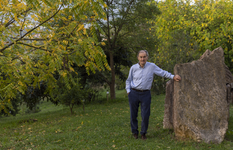 Al lado, dos imponentes rocas completan el cuadro. La primera es de goethita, mineral de hierro extraído de La Arboleda. Para mí es un homenaje a todos aquellos mineros que con su esfuerzo hicieron de Bizkaia un lugar próspero y lleno de oportunidades. La segunda es una roca de caliza de color rojizo provista de incrustaciones de corales y moluscos con forma de caracol (rudistas) y es lo que conocemos como mármol rojo de Ereño. Gran parte de bilbaínos hemos podido apreciarlo en los portales del ensanche de la Villa. Este conjunto es formidable y es donde suelo hacer una parada, para después proseguir el camino deleitándome con otras vistas.