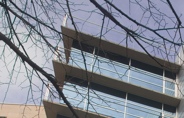 “Los que entran en la escuela por primera vez, a menudo, se sorprenden de lo luminosa que resulta, de sus espacios tan amplios. Tiene rincones preciosos, como éste que os muestro, desde el que se aprecian los colores del invierno en los árboles, la luz…y te sientes parte del campus, pero, al mismo tiempo, inmerso en la ciudad. Es también un lugar perfecto para el estudio, en el que es habitual ver estudiantes absortos, concentrados con sus auriculares o hablando, trabajando en equipo y ayudándose unos a otros. Es, sin duda, uno de mis rincones favoritos de la escuela”.