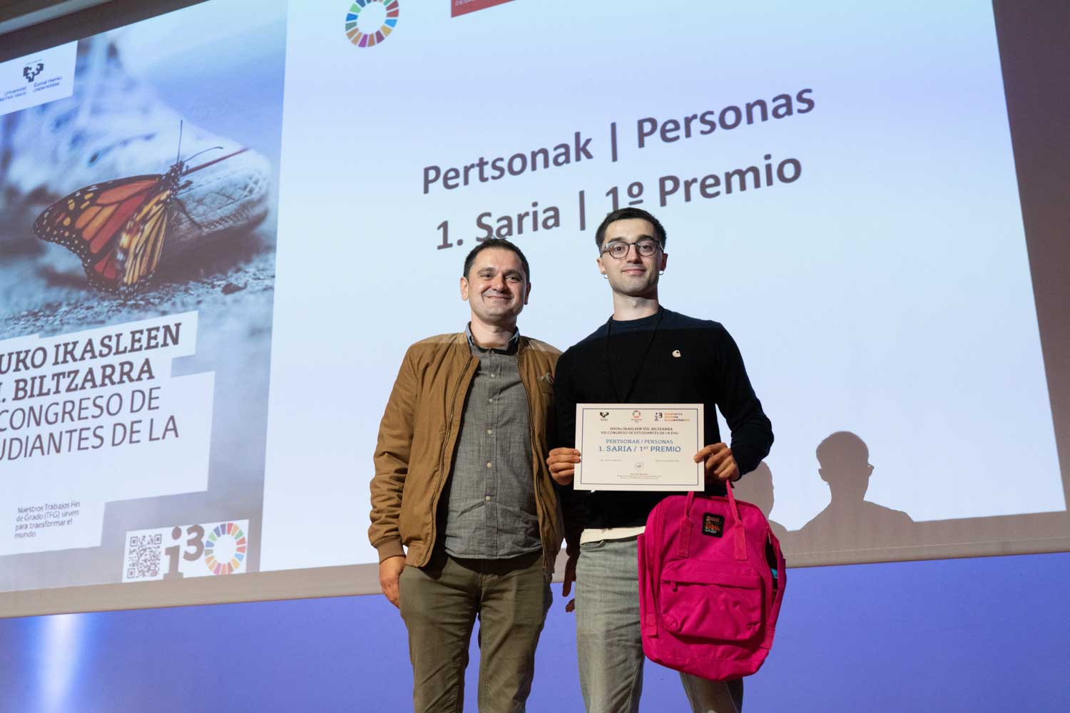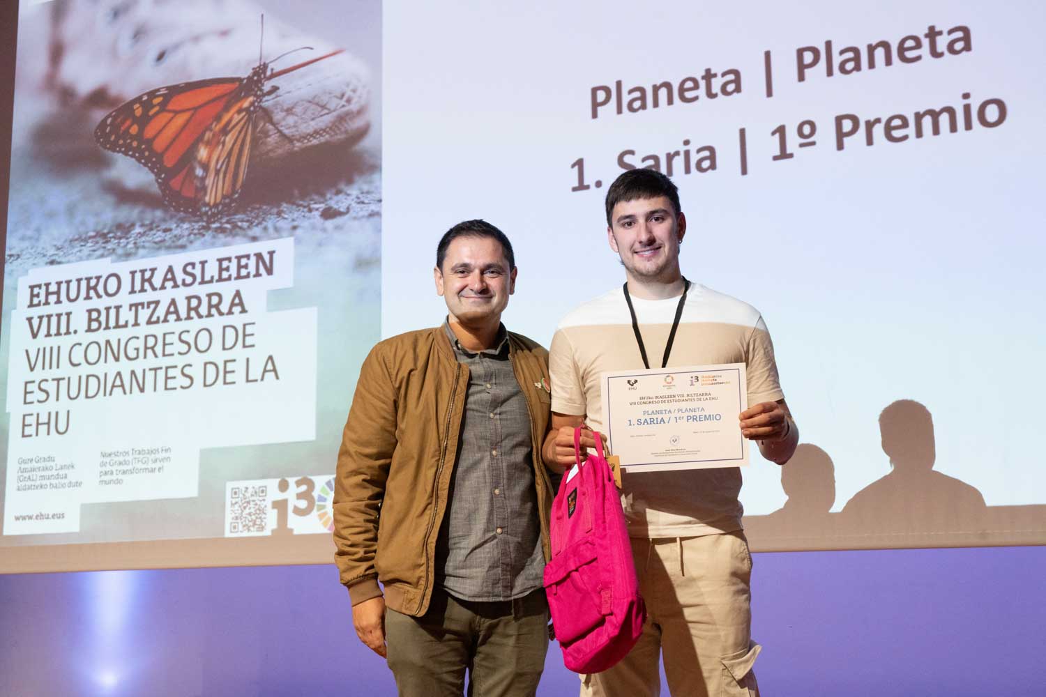 El sábado 25 de octubre de 2025 se celebró, en el Bizkaia Aretoa de Bilbao, el VIII Congreso de estudiantes de la EHU bajo el título ‘Nuestros Trabajos Fin de Grado sirven para transformar el mundo’. En esta iniciativa se ha pretendido visibilizar y reconocer los trabajos de investigación realizados por el alumnado de grado en torno a los Objetivos de Desarrollo Sostenible de la Agenda 2030.