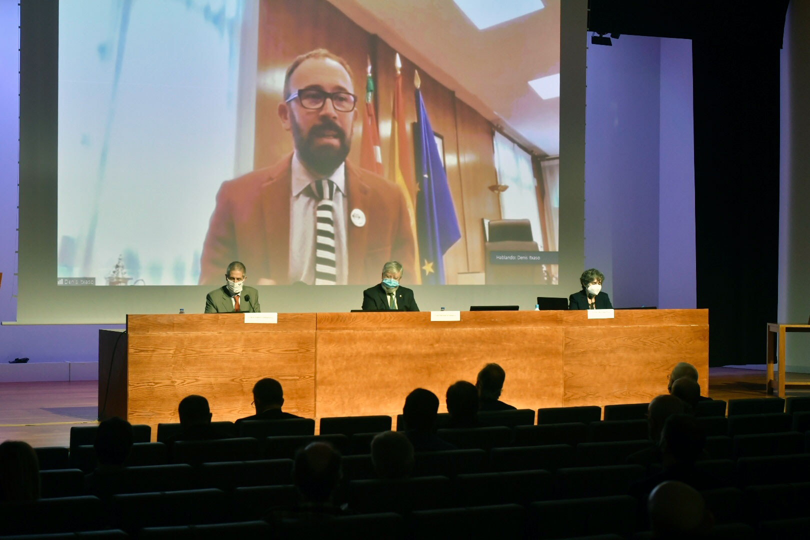 El delegado del Gobierno Denis Itxaso ha felicitado vía streaming al premiado. Fotos: Mikel Mtnz. de Trespuentes. UPV/EHU. -