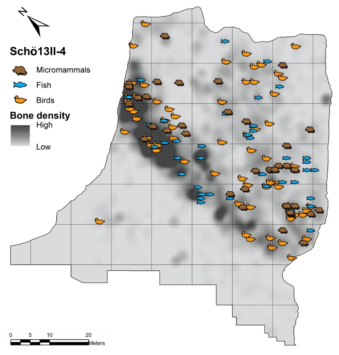 Distribución especial de micromamíferos, aves y peces en Schöningen 13II-4. -