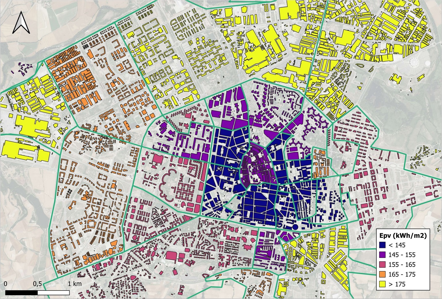 El equipo de investigación Ekopol ha medido la capacidad de los edificios de Vitoria-Gasteiz para generar electricidad a partir de la energía solar