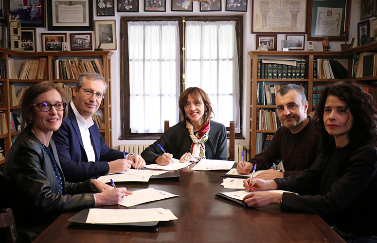 La UPV/EHU, la Diputación Foral de Gipuzkoa, el Ayuntamiento de Ataun, Eusko Ikaskuntza y la Fundación Jose Miguel de Barandiaran firman en Sara Etxea el convenio de creación de la cátedra