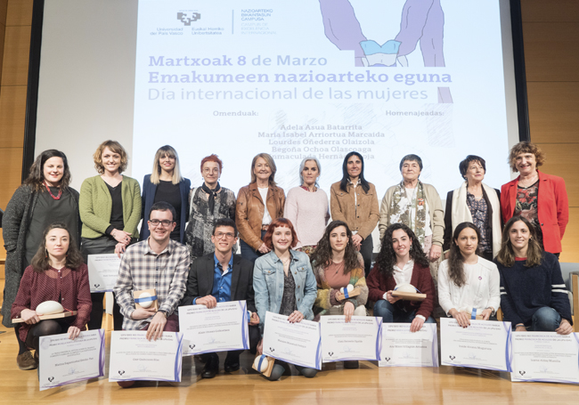 La Universidad del País Vasco ha reconocido la trayectoria académica e investigadora de: Maribel Arriortua Markaida, Adela Asua Batarrita, Inma Hernáez Rioja, Lourdes Oñederra Olaizola y Begoña Ochoa Olascoaga, con motivo del Día Internacional de las Mujeres. Todas ellas son modelos de referencia en la universidad y en sociedad. El homenaje ha tenido lugar en el marco del Acto Institucional de la UPV/EHU con motivo del 8 de Marzo, Día Internacional de las Mujeres, organizado por la Dirección de Igualdad.