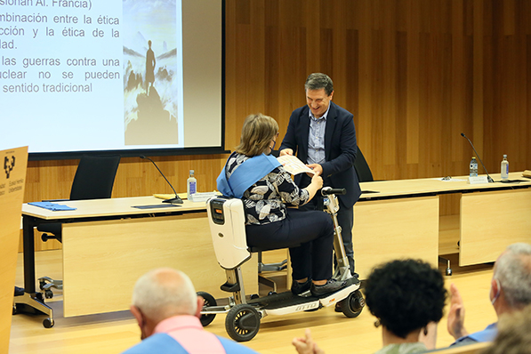 El auditorio del Centro Carlos Santamaría del Campus de Gipuzkoa acogió el acto de entrega de diplomas e imposición de becas a la XX promoción (2018/2022) del Título Universitario en Ciencias Humanas que se imparte en las Aulas de la Experiencia.