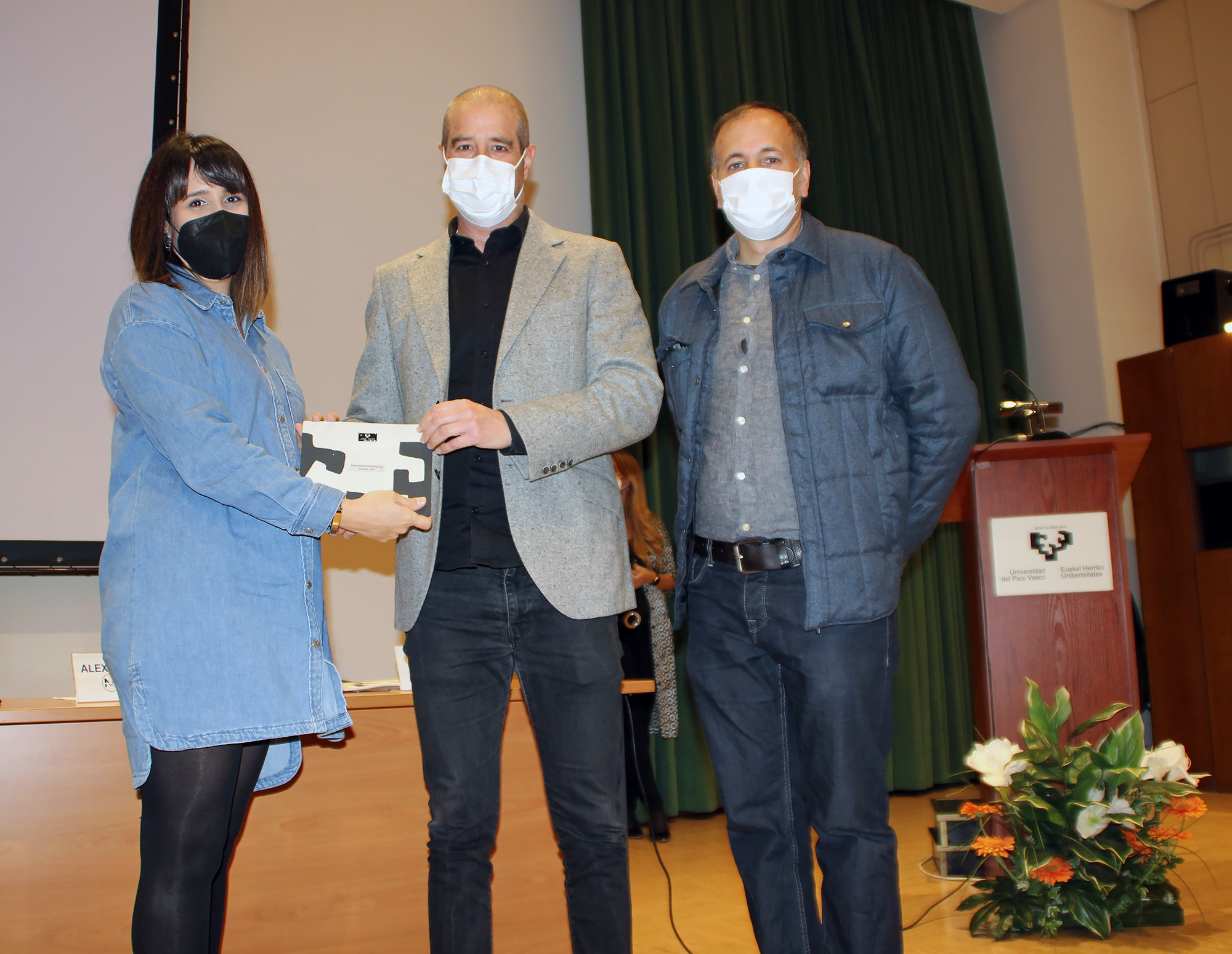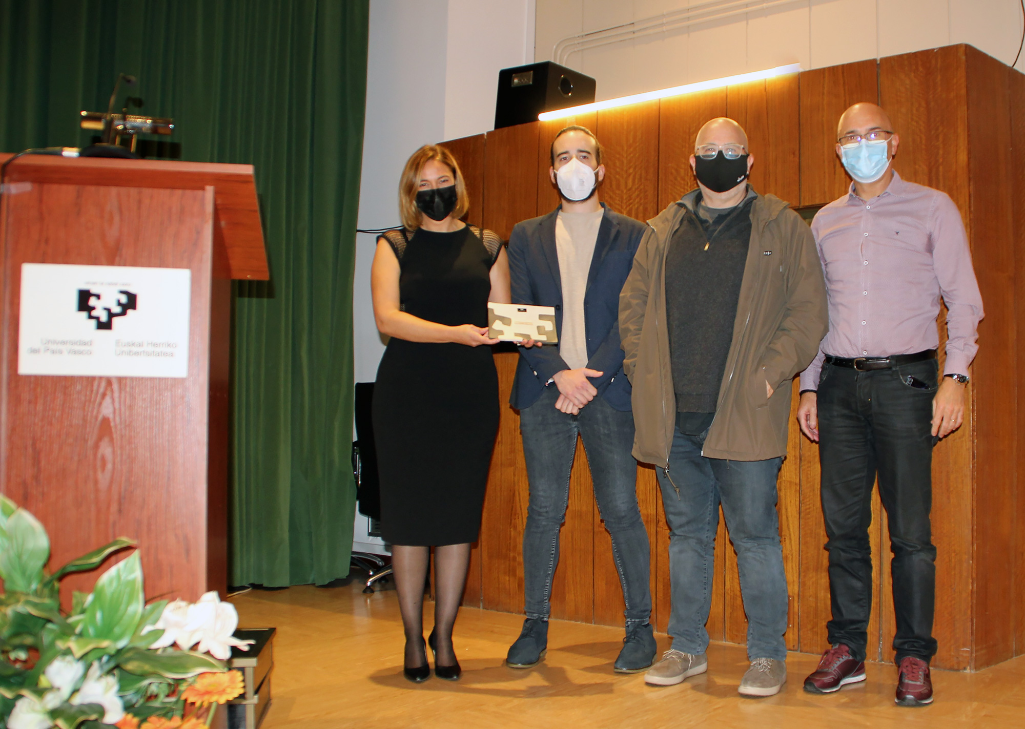 Iratxe Umaran Chies (Zorraquino), Iñaki Allende (Zorraquino), Lontzo Sainz (ETB) y Iñako Gurrutxaga (ETB) reciben el premio -