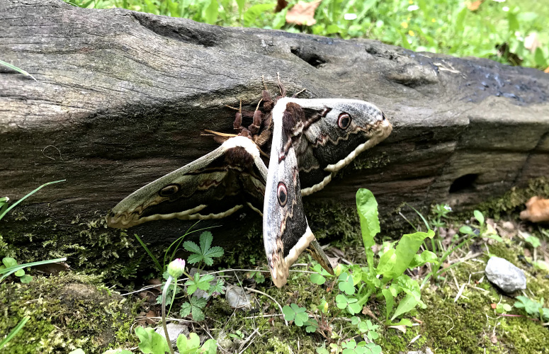 Los lepidópteros se dividen tradicionalmente en mariposas (diurnas) y polillas (nocturnas), si bien el término más correcto para denominar a las mariposas de actividad mayoritariamente nocturna y que no causan daño alguno a prendas ni a cultivos es falenas. El gran pavón nocturno es una de las falenas que alcanza mayor tamaño en nuestra región y que podemos encontrar en nuestros campos a partir del mes de abril. Por su actividad nocturna, se puede(n) ver algún(os) ejemplar(es) reposando durante el día, momento en que son más vulnerables, por lo que se camuflan con tonos pardos que dificulta verlas. La mayoría de las mariposas, falenas y polillas se defienden, además, acumulando toxinas de las plantas que ingieren durante su fase larvaria (orugas). Esta especie, junto con el pequeño pavón nocturno, confunde a sus posibles depredadores con dos grandes manchas en sus alas que simulan ojos.