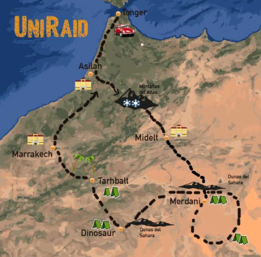 UNIRAID es un rally solidario cuyo objetivo es cruzar Marruecos y entregar 30 kg de material solidario en las aldeas del desierto. Los equipos han de estar formados por dos estudiantes de entre 18 y 28 años de edad. Uno de los equipos que participará en la prueba, que este año tendrá lugar del 24 de febrero al 4 de marzo, lo componen Iker Gastaminza Unanue, alumno de la Escuela de Ingeniería de Gipuzkoa de la UPV/EHU y Yannik Briones Duarte, alumno de la Facultad de Derecho de la UPV/EHU. Estos dos estudiantes tendrán que completar 7 etapas navegando con un roadbook, con el objetivo de cruzar Marruecos de Norte a Sur. Se trata de una aventura de 9 días cruzando el desierto de Marruecos en un turismo de más de 20 años.